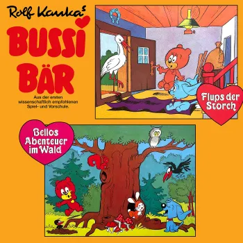 In dieser Folge der Abenteuer von Bussi Bär und Bello hört ihr "Flups, der Storch" und "Bellos Abenteuer im Wald". Mit dabei sind der Rabe, das Häschen und das Wildschwein - und natürlich der Storch Flups.