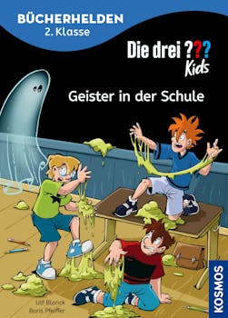 Gespenster gibt es doch gar nicht. Oder vielleicht doch? Justus, Peter und Bob helfen beim Einschulungsfest für die neuen Erstklässler mit. Die Vorfreude ist riesig, als sie am Vorabend das Buffet in der Turnhalle aufbauen. Doch plötzlich gehen die Lichter aus und unheimliche Geräusche klingen durch das ganze Schulgebäude. Will jemand die Feier verhindern? Die drei ??? aus Rocky Beach stürzen sich in ein aufregendes Grusel-Abenteuer. Ein spannender Fall zum lesen lernen mit vielen bunten Illustrationen und einem Rätsel nach jedem Kapitel. Mitfiebern und mit den Detektiven auf Geisterjagd gehen!