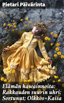 Pietari Päivärinnan teos "Elämän hawainnoita: Rakkauden suurin uhri; Sortunut; Olkkos=Kaisa" on monikerroksinen kertomus rakkauden ja elämän haasteista, joka yhdistää henkilökohtaiset kokemukset ja laajemmat yhteiskunnalliset teemat. Kirjan tyyli on intensiivinen ja kuvaileva, vangiten lukijan huomion syvällä tunteellisuudellaan. Käsittelyssä on niin voimakkaita kuin haavoittuvia hetkiä, jotka tuovat esiin ihmisen sisäisen konfliktin ja rakkauden moninaisuuden. Kirja on osittain autofiktiivinen ja se heijastelee nykyajan ihmissuhteiden monimutkaisuutta, tuoden käsiteltäväksi myös ajankohtaisia kysymyksiä, kuten identiteetti ja henkinen hyvinvointi. Pietari Päivärinta on suomalainen kirjailija, jonka teokset käsittelevät usein inhimillisiä tunteita ja elämän suuria kysymyksiä. Hänen oma taustansa ja kokemuksensa ovat olleet merkittäviä inspiraation lähteitä kirjoittamiselle. Päivärinta on tunnettu herkkyydestään ja kyvystään kuvastaa elämän monisyisiä puolia, mikä tekee hänen teoksistaan erityisiä ja vaikuttavia. "Elämän hawainnoita" on suositeltava lukukokemus kaikille, jotka kaipaavat syvällisiä pohdintoja rakkaudesta ja elämisestä. Kirja tarjoaa ainutlaatuisen mahdollisuuden tarkastella omia tunteita ja suhteita, avartaen lukijan ymmärrystä elämän monimuotoisuudesta. Sen voimakkaat tarinat ja herkät huomioinnit tekevät siitä pysyvän osan suomalaista kirjallisuutta.