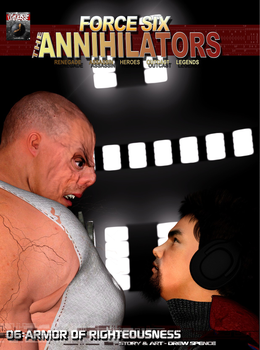 It's an astonishing adventure against the angry anvil and armor of righteousness. Add another action caption of a captive crusader. Beta's in a bind! Drew Spence's graphic comic continues as team Annihilator takes on Redder Coltrane.