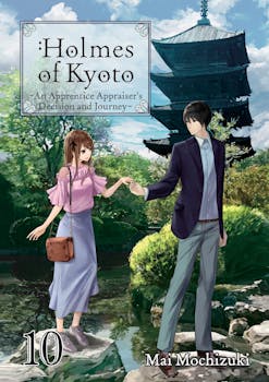It’s May in Aoi’s second year of university, and to celebrate her twentieth birthday, she and Kiyotaka take a trip to Kyushu on an extravagant overnight train. As they’re enjoying their vacation on rails, they run into Shiro Amamiya, one of the people involved with the drug cult in Ohara. He has two stolen hanging scrolls on him, which were supposed to have been sold at an overseas auction! In order to reclaim their friend’s paintings, Aoi and Kiyotaka find themselves taking on a new investigation. The mysteries continue in Holmes of Kyoto: Volume 10!