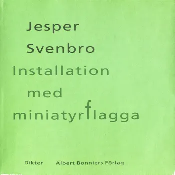 Jesper Svenbro är född 1944 i Landskrona och debuterade 1966 med diktsamlingen Det är i dag det sker. Sedan 1973 har han varit bosatt omväxlande i Italien och Frankrike. 2006 valdes han in i Svenska Akadmien. Installation med miniatyrflagga publicerades första gången 1999.