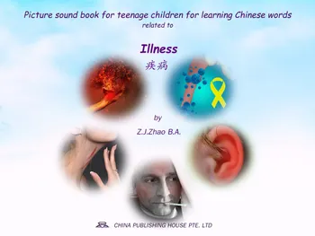 This is an epub picture sound book for teenage children. It is for learning the written Chinese characters, pronunciation and pinyin of the commonly-used Chinese words related to the topic of illness. Each page in the book groups together a written Chinese word, its English translation, pinyin, sound clip and a picture which is carefully chosen to illustrate the word. The sound clip helps a learner pronounce the Chinese word correctly like a Chinese speaker. By repetitively looking at the word, its translation, pinyin or associated picture, and listening to the sound clip, a learner can memorize the Chinese word, pinyin and correct pronunciation quickly and naturally.