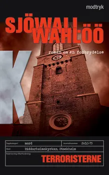 TERRORISTERNE er tiende og sidste bog i den klassiske og stilskabende serie "Roman om en forbrydelse", som det verdensberømte, svenske forfatterpar har skrevet om politiet og samfundet.