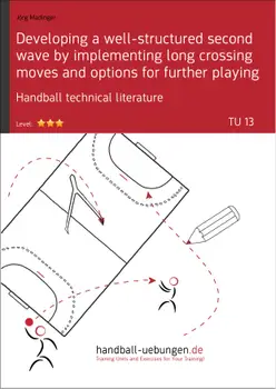 The objective of this training unit is to develop a long crossing during the second wave. Following a warm-up running exercise, a short game, and a ball familiarization exercise, the players initially develop the long crossing during the goalkeeper warm-up shooting phase. In the subsequent series of shots which will be combined with a 1-on-0 fast break, the players practice the long crossing with compensation of the center back player. Defense players and the pivot are added for the two subsequent small group exercises, before the players implement the course 4-on-4 during the closing part of the training unit.