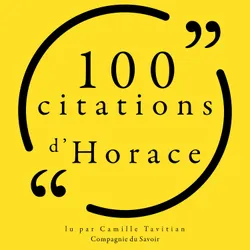 Horace est un poète latin. La vie d'Horace nous est essentiellement connue par son œuvre, riche en informations et considérée comme une source fiable. Quelques renseignements supplémentaires figurent dans la biographie « Des hommes illustres » de Suétone. Ces 100 citations visent à donner accès à son œuvre monumentale par une sélection de ses pensées les plus marquantes, dans un format accessible à tous. Une citation est plus qu'un extrait d'un propos, ce peut être un trait d'esprit, un résumé d'une pensée complexe, une maxime, une ouverture sur une réflexion plus profonde.