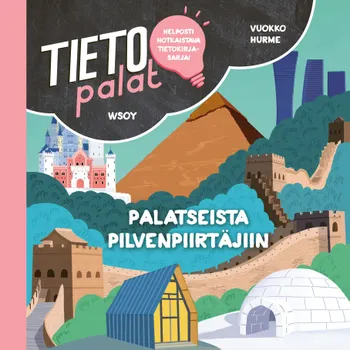 Ihmiset ovat luoneet hulppeita linnoja, jännittäviä torneja sekä hämmästyttäviä temppeleitä, kirkkoja ja luostareita. Uusi Tietopalat-sarjan kirja esittelee hienoja ja erikoisia rakennuksia maan alta ja korkealta yläilmoista. Tutuiksi tulevat niin luolastot kuin Eiffel-torni, jaonpahan maailmassa myös läpinäkyvä talo sekä lumesta rakennettu hotelli. Koululaisille suunnatuissa Tietopalat-kirjoissa on kiinnostavaa tietoa, sopivasti tekstiä ja runsas värikuvitus. Sarja tarjoaa luettavaa monenmoisista eri aiheista kaikille lukemaan opetteleville tiedonnälkäisille.