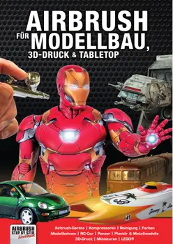 "Airbrush für Modellbau, 3D-Druck & Tabletop" spannt erstmals den Bogen vom klassischen Modellbau rund um Bahnen, Autos und Boote bis hin zu Figuren und Modelle aus der modernen 3D-Druck-Technik, dem Tabletop Gaming und dem LEGO Bau. Bei all diesen Modellen und Figuren ermöglicht die Airbrush-Technik durch ihren berührungsfreien Farbauftrag sowie die feine Vernebelung von Farbe eine problemlose Bearbeitung jeglicher Objektformen, feinste Nuancen in der Farbgebung und damit eine detailgetreue und realitätsnahe Gestaltung.
