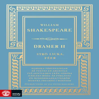 Andra bandet av Shakespeares dramer innehåller sex komedier. Det tragiska följer med in i det komiska i denna villervalla av kärlek, förväxlingar och missförstånd. En korseld av mänskliga konflikter vänder allt upp och ner – förälskelser, erotik, identitet – bland unga älskande, argbiggor och dumskallar, prinsar, féer och gentlemen. Allt jordiskt genomlyses, det himmelska är språket.