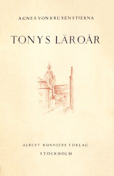 Tony förs i Stockholm in i en krets religiösa unga flickor som hon emellertid lämnar när hon förstår att hennes tro inte räcker till. Istället kastas hon in i societens mondäna nöjesliv. De starka sinnesrörelserna i en kärlekshistoria blir en stor påfrestning för hennes oroliga natur.Romanen Tonys läroår gavs ut första gången 1924 och är del två i Tony-trilogin. De övriga delarna är Tony växer upp och Tonys sista läroår. Agnes von Krusenstjerna (1894-1940) blev under sin tid stämplad av de konservativa som en dekadent och trivial författare. Hennes verk satte igång stora svallvågor kring de moraliska normerna, framförallt vad gällde kvinnors rättighet att uttrycka sig fritt och kampen kring en friare sexualmoral. Romantrilogin om Tony Hastfehr blev Agnes von Krusenstjernas genombrottsverk.