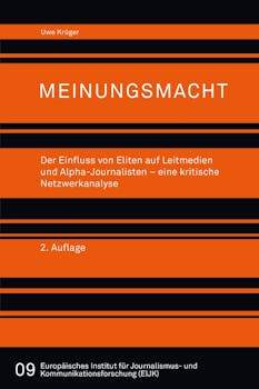 In "Meinungsmacht. Der Einfluss von Eliten auf Leitmedien und Alpha-Journalisten" beschreibt Uwe Krüger mittels einer aufwändigen Netzwerkanalyse die Verflechtungen zwischen Journalismus, Politik und Wirtschaft. Mit Hilfe einer Frame-Analyse zeigt er zudem Auffälligkeiten, Leerstellen und Tabus in der Berichterstattung auf.
