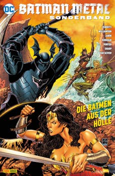 KAMPF DEN DUNKLEN RITTERN! Die grauenvollen Batmen aus dem Dunklen Multiversum fallen über die Erde her. Gotham City haben sie bereits erobert, jetzt greifen diese finsteren Kreaturen auch andere Metropolen der USA an, darunter Coast City, Amnesty Bay und Central City. Die Helden Aquaman, Wonder Woman, Flash und Green Lantern rasen ihren Städten zu Hilfe und geraten in scheinbar aussichtlose Kämpfe mit den Dunklen Rittern, doch ob sie untergehen oder überlegen sein werden, liegt letztendlich an Cyborg von der Justice League, dem eine unerwartete Heldin zur Seite steht… Der zweite Sonderband zum DC-Event des Jahres Batman Metal – geschrieben von Joshua Williamson (FLASH) und Robert Venditti (HAL JORDAN UND DAS GREEN LANTERN CORPS) und gezeichnet von den Comic-Stars Ethan Van Sciver, Liam Sharp, Howard Porter und weiteren. mit Ausklappcover
