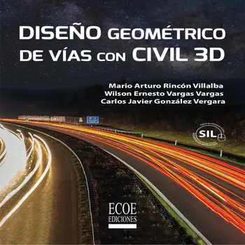 El diseño geométrico de vías permite que al construir carreteras se tengan características geométricas, con altas especificaciones en su trazado, comodidad para los usuarios, amigables con el medio ambiente y seguras en su trayectoria. Este libro nos permite tener una metodología, paso a paso, para realizar un diseño geométrico, empleando herramientas computacionales como son, la hoja de cálculo de Excel y el editor gráfico AutoCAD; con estas herramientas podemos iniciar un rápido recorrido por el mundo del diseño vial. La persona que requiera consultar el libro debe manejar los conceptos teóricos y los modelos matemáticos básicos para el diseño en planta y su geometría, curvas horizontales, sección transversal detallada y el diseño vertical en el trazado de la rasante, curvas verticales, pendientes máximas y mínimas, y movimientos de tierras.La persona que requiera consultar el libro debe manejar los conceptos teóricos y los modelos matemáticos básicos para el diseño en planta y su geometría, curvas horizontales, sección transversal detallada y el diseño vertical en el trazado de la rasante, curvas verticales, pendientes máximas y mínimas, y movimientos de tierras.