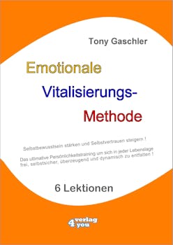 Die "EMOTIONALE VITALISIERUNGS-Methode" von Tony Gaschler gibt Ihnen die Grundfähigkeiten, sich im Leben erfolgreich durchzusetzen und sich in jeder Lebenslage und vor jeder Person frei, selbstsicher, überzeugend und dynamisch zu entfalten.