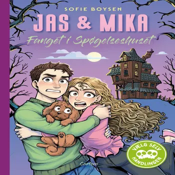 Vælg selv handlingen! Vil du være Jas, Mika eller Baloo? Jasmin har planlagt en tur til Spøgelseshuset i anledning af Mikas fødselsdag. Den falder nemlig på selveste Halloween - d. 31. oktober. Bare ærgerligt, at Mika er superbange for alt, der er det mindste smule uhyggeligt. Baloo var egentlig ikke inviteret, men han har sneget sig med alligevel. Nu står de tre foran en sjov - og lidt uhyggelig - udfordring, når de skal igennem Spøgelseshuset ...... og hvis de skal gøre sig nogen som helst forhåbninger om at komme ud igen, er det op til DIG at hjælpe dem.Men hvem vil du helst spille som?Fra ca. 9 år.Andre Jas og Mika-eventyr:Jas og Mika: Kærlighed ved første klikJas og Mika: Farlig følgerJas og MIka: For evigt forelsket