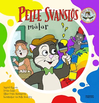 Lyft-på-fliken-bok med härlig färgfest. Pelle Svanslös och hans vänner ska måla om. Pelle har med sig blå färg, Maja gul, och Gammel-Maja har röd färg. Men kattungen Frallan trillar så att alla färgerna spills ut! Hur ska det gå nu? Lyft på flikarna och se!