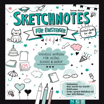 Leg los und erstelle deine eigenen Sketchnotes mit deinem Wissen aus dem Grundlagenteil und den Motiven aus der Symbol-Bibliothek! Freu dich auf mehr als 600 Sketch-Zeichnungen zum Abmalen oder Abpausen sowie Schritt-für-Schritt-Anleitungen für die wichtigsten Symbole. Ob Orga, Wetter, Kochen, Tiere, Hobby oder Party: In den 11 Themenbereichen der Bibliothek findest du alles, was dich täglich und rund ums Jahr beschäftigt.