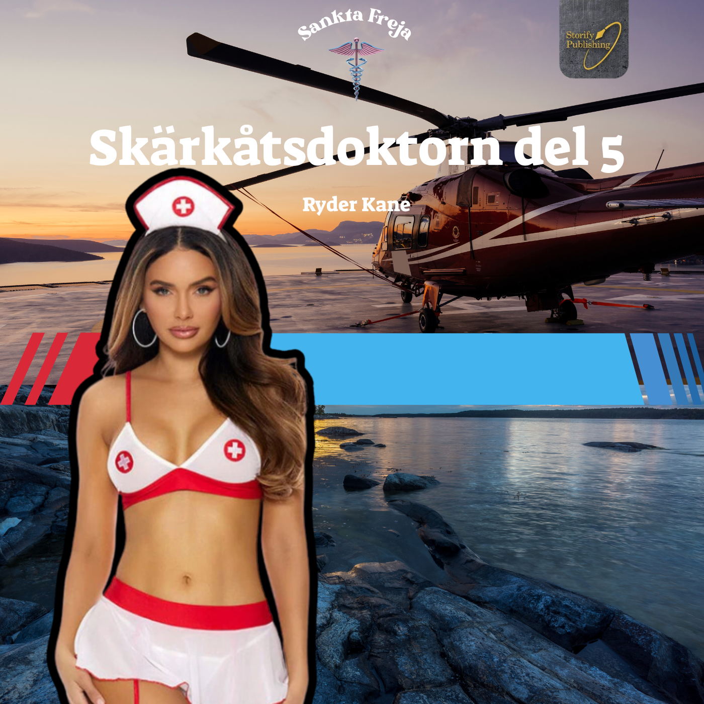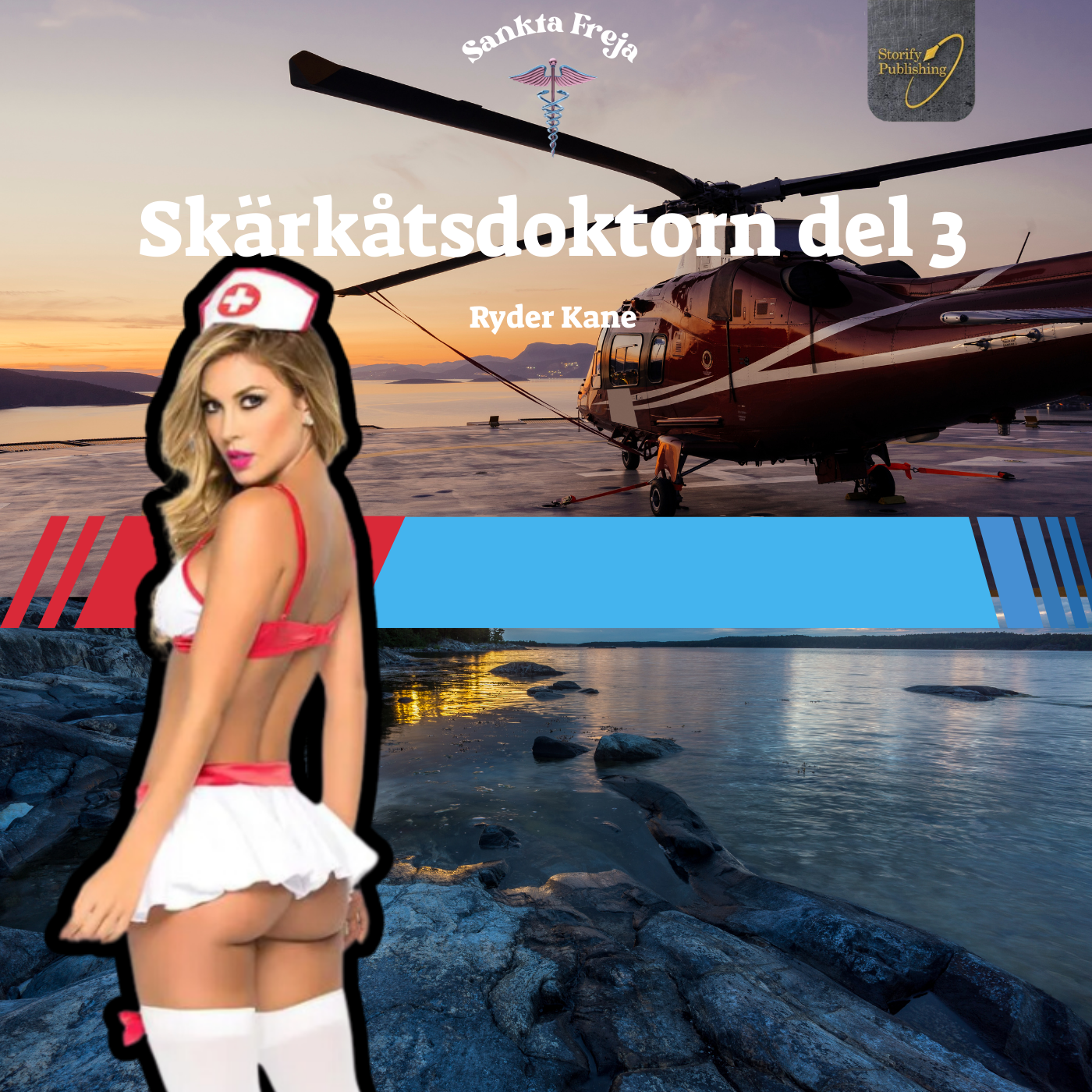 Välkommen till staden Sankta Freja där du får följa blåljuspersonalens sexiga vardag. Syndens slangar är del av en serie erotiska noveller där läkare, poliser och brandmän är i fokus.