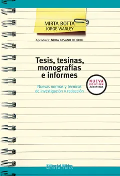 Este libro está especialmente dedicado a docentes y estudiantes universitarios o secundarios, profesionales e investigadores en formación. Ofrece no sólo técnicas de estudio y escritura sino las normas más actualizadas para abordar la escritura de tesis, tesinas, monografías, informes de investigación y otros trabajos relacionados con la actividad intelectual en lengua española. Éstos son los temas esenciales que se plantean de una forma sencilla y a la vez rigurosa: Selección del tema, planteamiento de una o varias hipótesis, cómo organizar el plan de trabajo, fuentes y recursos al alcance del investigador, la búsqueda bibliográfica, la búsqueda por internet, fichas, citas y notas, referencias a recursos electrónicos, el dominio y la interpretación de los datos, las conclusiones, la escritura y los aspectos formales de presentación del trabajo. En los Apéndices se ofrecen las novísimas normas de organismos internacionales y nacionales de normalización para la descripción completa del libro, las publicaciones periódicas y los materiales especiales para citar y registrar la documentación utilizada en una tesis u otros trabajos intelectuales; los más variados modelos de fichas, las nuevas reglas de descripción de documentos electrónicos y el repertorio de bibliotecas y archivos nacionales en países de habla hispana con sus direcciones, teléfonos, correo electrónico y sitios web. Estos datos han sido especialmente actualizados para esta nueva edición, que también ofrece un apartado sobre la tesina, un tipo de trabajo cada vez más habitual en el nivel medio y superior.