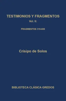 De Crisipo han destacado los estudiosos sus grandes dones como filósofo, más que la elegancia literaria. No compuso poesía, pero era muy dado a las citas, especialmente de Homero y los trágicos, como medio para reforzar sus propias opiniones. Dotado de una prodigiosa fuerza intelectual, desarrolló sistemáticamente, más que cualquier otro estoico, una forma de filosofía que mantuvo su validez y vigencia durante cuatrocientos años, y es probable que moldeara la mayor parte de los resúmenes de los manuales filosóficos del estoicismo. En este segundo volumen se incluyen los fragmentos 319-606 (es decir, los fragmentos sin indicación de obra y los dudosos).