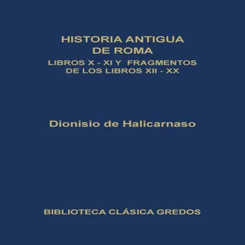 Este volumen incluye los dos últimos libros que nos han llegado prácticamente completos de la Historia de Dionisio de Halicarnaso, y los fragmentos que nos han alcanzado de los nueve libros siguientes (provenientes en su mayor parte de los resúmenes o extractos históricos que ordenó hacer en el siglo X el emperador Constantino Porfirogéneta).