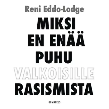 Vuonna 2014 Reni Eddo-Lodge julkaisi blogitekstin otsikolla "Miksi en enää puhu valkoisille rasismista". Teksti alkoi näin: "Minä en enää keskustele valkoisten kanssa rasismista. Enkä nyt tarkoita kaikkia valkoisia, tarkoitan vain sitä suurta enemmistöä, joka kieltäytyy tunnustamasta rakenteellisen rasismin ja sen ilmentymien olemassaoloa." Kun samanniminen kirja julkaistiin pari vuotta myöhemmin, se käynnisti rasismista uudenlaisen keskustelun Isossa-Britanniassa. Teoksessaan Eddo-Lodge tarkastelee mustien historian häivyttämistä, luokan ja rodullisuuden yhteyttä, valkoisten etuoikeutettua asemaa, monikulttuurisuuden pelkoa sekä valkoista feminismiä. Se on käsikirja jokaiselle, joka haluaa ymmärtää, miltä rasismi näyttää, miten sen tunnistaa ja miten sitä vastaan voi toimia. Esipuheen suomenkieliseen laitokseen on kirjoittanut toimittaja Maryan Abdulkarim, ja äänikirjan tulkitsee räppäri Yeboyahina tunnettu Rebekka Kuukka.