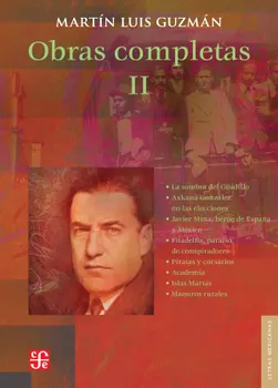 Martín Luis Guzmán fue uno de los grandes cronistas la Revolución mexicana, tema en el que su pluma ensayó distintos genéros, imbuido tanto por los alientos de la ficción como por su pasión por la indagación de carácter histórico. En este segundo tomo de sus Obras completas se incluye La sombra del Caudillo, su novela más célebre, así como Axkaná González en las elecciones; Javier Mina, héroe de España y México; Filadelfia, paraíso de conspiradores; Piratas y corsarios; Academia; Islas Marías y Maestros rurales.