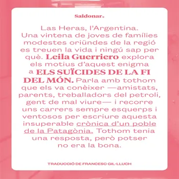 La periodista Leila Guerriero viatja a aquell indret agrest i salvatge de la Patagònia, interroga els amics i els familiars dels suïcides, recorre els mateixos carrers que ells, sempre deserts, i visita tots els racons del poble. Entrevista els veïns, fa preguntes a tothom que té una resposta o una teoria que podria explicar un drama tan sorprenent.