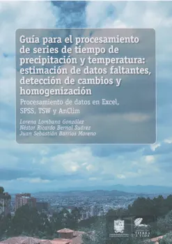 La guía para el procesamiento de series de tiempo de precipitación y temperatura: estimación de datos faltantes, detección de cambios y homogenización, describe las etapas para realizar el proceso de homogenización de series de tiempo mensuales, contribuyendo a evaluar la calidad de los datos y favoreciendo el desarrollo de estudios climatológicos. La guía ilustra el uso de modelos ARIMA para la modelación de las series y la estimación de datos faltantes, se presenta el uso de la prueba estadística de Worsley para la detección de cambios en el valor promedio de las series para cada mes del año y se describen los criterios para la identificación de estaciones meteorológicas vecinas para realizar el proceso de homogenización empleando la metodología de curva de dobles masas; en el proceso se tiene en cuenta el Índice Oceánico del Niño (ONI) para identificar períodos El Niño y La Niña, pues se pueden detectar cambios en los valores de las series en fechas específicas coincidentes con estos períodos; la Guía ha considerado aportes de autores como Martínez (1996), Nieto y Ruiz (2002), Montealegre (1990), Mesa et al. (1997); Rodríguez et al. (2010) y Bernal et al. (2011); la Guía logra presentar un conjunto de etapas empleando software estadísticos y también es importante reconocer que se vienen generando otras iniciativas institucionales empleando el software R; vislumbran así la necesidad de continuar avanzando en el tema de calidad de datos y sus usos potenciales.