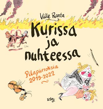 Ville Rannan uutta pilapiirrosta katsotaan verkossa jopa yli 200 000 kertaa, ja jokainen piirros herättää satojen kommenttien keskustelut. Rannan itse valikoima Kurissa ja nuhteessa kertaa 150 piirroksen voimin huippuhetket Sanna Marinin hallituksen ja koronapandemian vuoristorataa muistuttavilta vuosilta. Rannan poleeminen käsittelytapa poimii olennaisen niin rajoitusten ajasta, johtajiemme toilailuista, ilmastokatastrofista kuin yhteiskunnan polarisoitumisestakin. Kuvat on varustettu piirtäjän omilla taustoittavilla huomautuksilla.