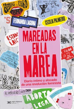En Mareadas en la marea, Fernanda Laguna y Cecilia Palmeiro cuentan, en forma de diario, cómo lo que empezó siendo un chiste entre amigas en la previa de un cumpleaños (¡hagamos una huelga de mujeres!) se volvió un torbellino de militancia y aventura. Cada entrada va construyendo una historia deliberadamente no oficial de la marea feminista, con su frenesí y sus contradicciones. Están las asambleas multitudinarias, donde las decisiones por consenso eran puro logro, pero costaban esfuerzo y somatizaciones salvajes; las marchas en el centro de Buenos Aires, con los pañuelos verdes y el glitter; un desfile de las mujeres de Fiorito en arteba, la feria más rica de la Argentina; un encuentro emocionado con Silvia Federici en Nueva York; la organización de una muestra en Londres, en un tironeo subjetivo entre la crítica al consumo y la fascinación por las ferias americanas; la fusión de la política y la fiesta, con un orgasmo sincronizado a escala planetaria; la iniciativa de crear una reserva de chongos potables; una orgía alucinatoria en una calle oscura en el medio de los festejos por la aprobación del aborto legal.