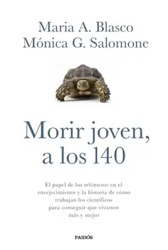 Guiadas por su propia curiosidad, Maria A. Blasco, bióloga molecular, y Mónica G. Salomone, periodista, emprenden en este libro, Morir joven, a los 140 años, una aventura personal para explorar este cambio de paradigma científico. Se preguntan qué es realmente el envejecimiento, por qué cada especie vive lo que vive y qué podemos hacer hoy para vivir más y mejor. Con la ayuda de geriatras, paleontólogos, demógrafos y fi lósofos, además de otros biólogos, espían en laboratorios de todo el mundo qué nos depara el futuro y tratan de desvelar la respuesta a las siguientes preguntas: ¿Qué cambios vitales nos esperan como personas y como sociedad? ¿A qué dilemas éticos nos enfrentaremos?