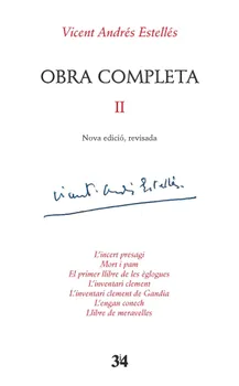 Aquesta Obra Completa -Nova edició, revisada- constitueix un nou projecte d'edició de l'obra estellesiana que conté estudis introductoris, un treball de reorganització cronològica de les obres i d'edició filològica dels poemes estellesians. En aquest segon volum s'apleguen les següents obres: L'incert presagi, Mort i pam, El primer llibre de les èglogues, L'inventari clement, L'inventari clement de Gandia, L'engan conech i el seu conegudíssim Llibre de meravelles.