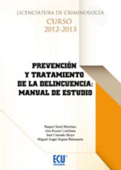 Con el presente manual se pretende que el alumno pueda personalizar el proceso de aprendizaje de cada uno; ha de facilitar el seguimiento de las exposiciones del profesor y ha de permitir que un alumno pueda profundizar en un tema de especial interés para él sin esperar a llegar a las explicaciones de clase correspondientes a ese punto del temario. Confiamos en que este material facilite el proceso de aprendizaje de la asignatura de Prevención y Tratamiento de la Delincuencia y agradecemos a los alumnos y alumnas que lo utilicen y realicen cuantas sugerencias sobre el mismo nos puedan hacer con el fin de mejorarlo.