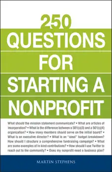 From budgets to bylaws, 250 Questions for Starting a Nonprofit provides you with the knowledge you need to make a plan, set realistic goals, and obtain sustainable financing for your nonprofit. This easy-to-understand guide walks you through each step of the process with Q&As that show you how to turn a grassroots idea into a federally recognized organization. Inside, you'll find detailed explanations on: The differences and similarities between organizations and corporations Publicizing and advertising through social media Using crowdsourcing sites like Kickstarter to raise money Forming the initial board of directors and filing incorporation documents Attracting the best volunteers and staff members With the expert advice in 250 Questions for Starting a Nonprofit, you will transform your vision into a thriving nonprofit organization.