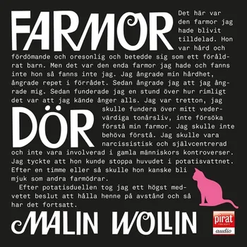 Rakel slåss mot en ond demon. I det här fallet en sjuklig gammal tant som råkar vara hennes farmor. Elak, bitter och omöjlig att älska. Eller? Mamma säger att farmor ligger för döden och alla väntar. Farmor väntar på döden. Rakel väntar på kärleken från en blå rock. Mamma väntar på att Rakel ska skärpa till sig och klappa farmor på kinden. Måste man förstå, förlåta och försonas eller kan man lämna sin farmor att dö? Farmor dör är en bok om Rakel och hennes farmor. Om eventuell förlåtelse, eventuell försoning och eventuell kärlek. Trots att farmor är tyngd av sorger, besvikelser och misstro förlorar hon aldrig någonsin skärpan. Du kanske har känt många farmödrar, men den här glömmer du aldrig.