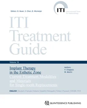 Volume 10 of the ITI Treatment Guide series starts out with the most recent statements and recommendations of the 5th ITI Consensus Conference, followed by a detailed protocol for the evaluation and treatment planning of patients with esthetic demands requiring single-tooth replacement with a dental implant. Various surgical situations commonly encountered in the esthetic zone will be presented and recommendations on their treatment will be provided. In addition, the clinical management of the planned implant site before and after placement through the use of provisional prostheses, laboratory communication, abutment design, restorative material selection, and delivery will be examined. This volume of the ITI Treatment Guide series provides a comprehensive, evidence-based approach to single-tooth replacement in the esthetic zone, from consultation to follow-up, with a focus on current treatment modalities and on the materials that present-day implant dentistry has to offer.