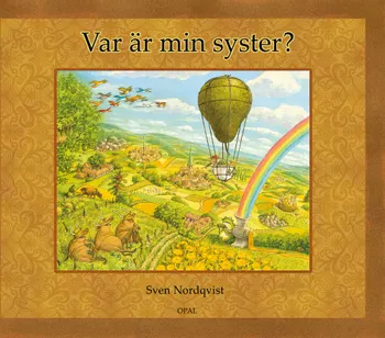 Plötsligt är storasyster borta! Lillebror ger sig ut för att leta efter henne. Till sin hjälp har han minnen från tidigare utflykter och vad systern brukar berätta om. Letandet går genom luften i en luftballong som bärs av ett upp och nedvänt päron. Landskapen är fantasifulla och fyllda av detaljer; kor som dricker öl, en groda som spelar pingis med en gumma, en hög av älgar som sover i en soffa, indianer som rider på en snok och annat finurligt. Tittar man noga så kan man kanske se systerns gula kalufs lite här och där.