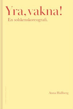 Lyckan i att inte veta. Något kommer snart att hända. Yra, vakna! är en diktsamling som utspelar sig på en scen. Maria berättar för sig själv om att följa solen. Vid scenkanten sitter två män och dinglar med benen. På golvet rör sig figuriner i olika rutiner. Poesin tar plats, backar undan, kliver fram igen. Om det går att göra rum för en händelse. Om det är möjligt att ta emot ljus och lek, vad som trots allt lever.