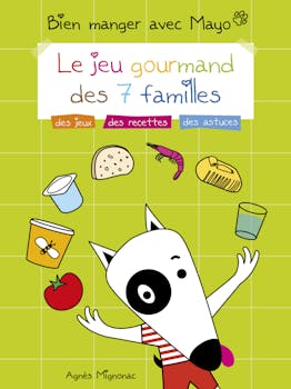 « Bien manger avec Mayo - Le jeu gourmand des 7 familles » s'adresse aux enfants de 6 à 10 ans. Ils ont pour guide Mayo, un chien malicieux, complice, pédagogue, dont le nom a été choisi par des enfants.