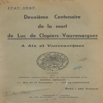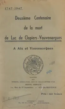 Deuxième Centenaire de la mort de Luc de Clapiers-Vauvenargues : 1747-1947, à Aix et Vauvenargues