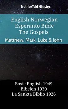 This publication contains Matthew, Mark, Luke & John of the Bible in Basic English (1949) and Bibelen (1930) and La Sankta Biblio (1926) in a parallel translation. And it holds a total of 23,138 references linking up all the books, chapters and verses. It includes a read and navigation friendly format of the texts. Here you will find each verse printed in parallel in the English - Norwegian - Esperanto (bbe-nor1930-esp) order.
