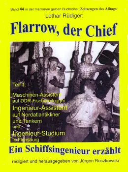Lothar Rüdiger erzählt in diesem Band 44 der von Jürgen Ruszkowski herausgegebenen maritimen gelben Buchreihe meisterhaft in Romanform seinen beruflichen Werdegang: 1956 als Maschinen-Assistent auf dem Logger "RUDOLF BREITSCHEID" des Fischkombinats Rostock. – Flucht aus der DDR in die Bundesrepublik – 1957 als Ingenieur-Assistent auf dem Nordatlantikliner BERLIN des Norddeutschen Lloyd und später auf dem Tanker CAPERATA der Deutschen Shell. Danach das Studium zum Schiffsingenieur II in Flensburg.
