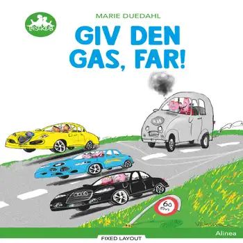 Giv den gas, far! er udgivet i Alineas Grøn Læseklub, der henvender sig til de nye læsere i indskolingen. Bogen indeholder mange lydrette og lydnære ord, og der er fokus på korte, enkle sætninger og hyppige gentagelser. Bogen egner sig til tidlig læsning, læseløft og læseindsats.
