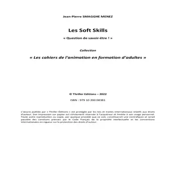 Les savoir-être, pourquoi est-il si difficile de les définir ? Ne sont-ils en définitive qu’un leurre ? La collection « Les cahiers de l'animation en formation d'adultes » tente de circonscrire les savoir-être ou soft skills d’un point de vue critique et s'adresse aux formateurs désirant mettre en œuvre une animation pouvant à la fois être proposée aux apprenants comme introduction ou comme conclusion d'une séquence d'apports théoriques. Son objectif est de proposer sous un angle pratique et réflexif des techniques d'animation favorisant les apprentissages clefs ou transversaux communs à plusieurs domaines de la formation professionnelle.