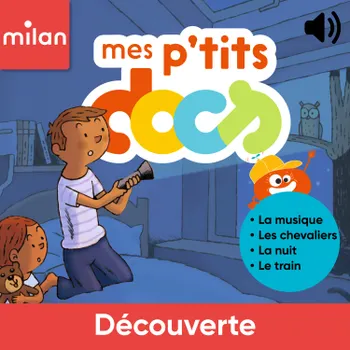 Mes P'tits Docs, Découverte - La musique, Texte : Stéphanie Ledu. Illustrations : Didier Balicevic. Voix : Nicolas Éon et Lucie Ravet. - Les chevaliers, Texte : Stéphanie Ledu. Illustrations : Wouzit. Voix : Muriel Darras et Lucie Ravet. - La nuit, Texte : Stéphanie Ledu. Illustrations : Robert Barborini. Voix : Nicolas Éon et Lucie Ravet. - Le train, Texte : Stéphanie Ledu. Illustrations : Julie Olivi. Voix : Nicolas Éon et Lucie Ravet. © Éditions Milan, 2025.