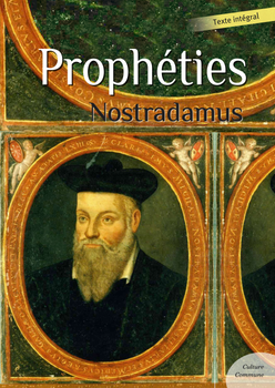 Michel de Nostredame, dit Nostradamus, né le 14 décembre 1503 à Saint-Rémy-de-Provence, et mort le 2 juillet 1566 à Salon-de-Provence, est un apothicaire (pharmacien) français. Selon bien des sources, il aurait également été médecin, bien que son expulsion de la faculté de médecine de Montpellier témoigne qu’il n'était pas possible d’être les deux à la fois. Pratiquant l'astrologie comme tous ses confrères à l'époque de la Renaissance, il est surtout connu pour ses prédictions sur la marche du monde. Prophéties est partagé en Centuries, une centurie étant, théoriquement, un ensemble de cent quatrains. La septième centurie resta toujours incomplète. La première édition, pleine de références savantes, contient 353 quatrains prophétiques, la dernière, publiée deux ans après la mort de Nostradamus, 942 – soit 58 quatrains de moins que les 1000 qu'il avait annoncés (« parachevant la milliade »). Source Wikipédia.