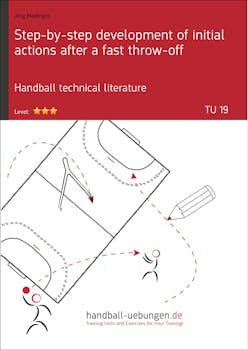 The objective of this training unit is to develop a simple initial action after a fast throw-off. Following warm-up and a coordination run exercise, the players practice the basics during the ball familiarization phase and the goalkeeper warm-up shooting. During the three subsequent exercises, the players further develop the running and passing paths and eventually combine them in order to create an initial action. In the closing game, the players implement what they practiced before.