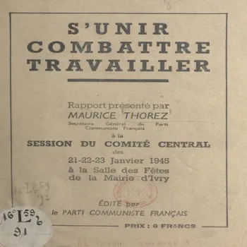 S'unir, combattre, travailler : Session du Comité central des 21-22-23 janvier 1945 à la salle des fêtes de la mairie d'Ivry