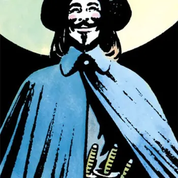 Débuté en 1981 et terminé en 1988, V pour Vendetta est un comics illustré David Lloyd et scénarisé par Alan Moore. Œuvre culte V pour Vendetta narre le combat d’un homme masqué pour détruire un régime dystopique. L’intrigue commence en 1997 et sonne comme une ode à la résistance mais aussi à l’anarchisme. Adapté en 2006 par James McTeigne sur un scénario des sœurs Wachowski, le film a popularisé le masque du justicier représentant Guy Fawks, l’homme qui essaya de faire exploser le parlement anglais lors de la conspiration des poudres en 1605. Ce visage est maintenant utilisé par les hacktivistes du web nommé Anonymous.